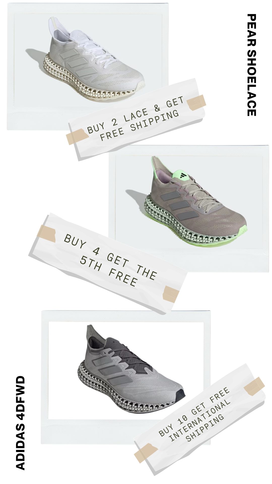 Say goodbye to one-size-fits-all laces. At Pear Shoelaces, we offer custom lengths tailored to fit your Adidas 4DFWD perfectly. Enjoy a snug, comfortable fit that enhances your style and performance.