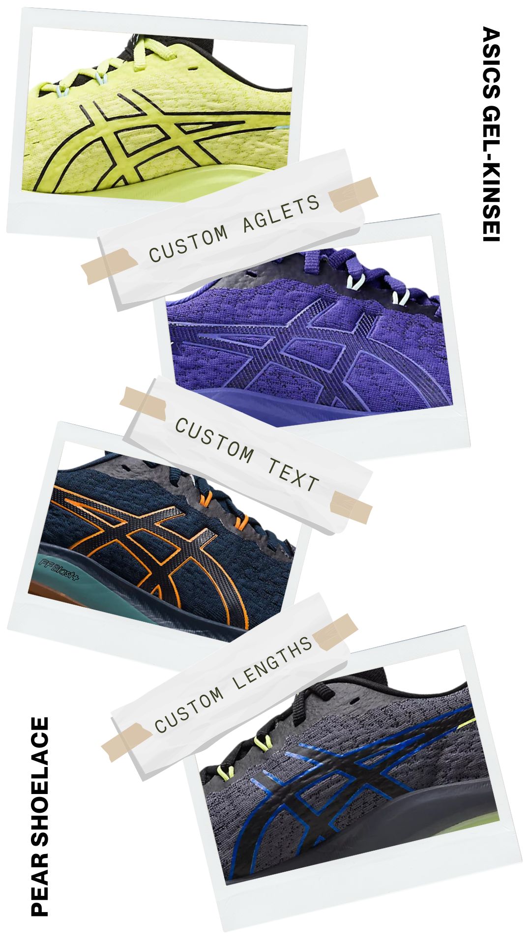 Upgrade your Asics Gel-Kinsei with our premium, customisable shoelaces. Explore our collection to find the perfect pair that matches your style. Shop now and give your sneakers the personalised touch they deserve with Pear Shoelaces!