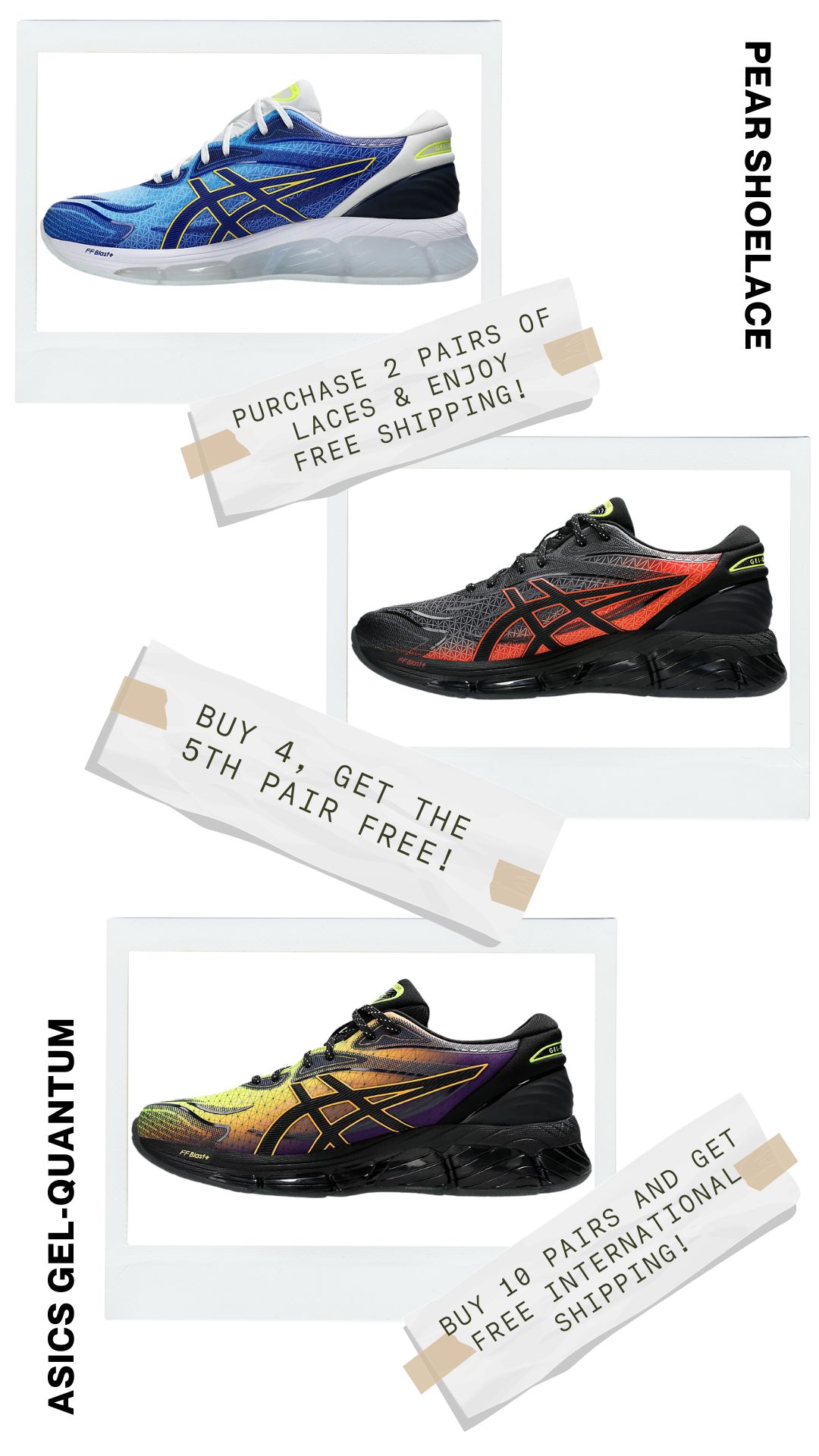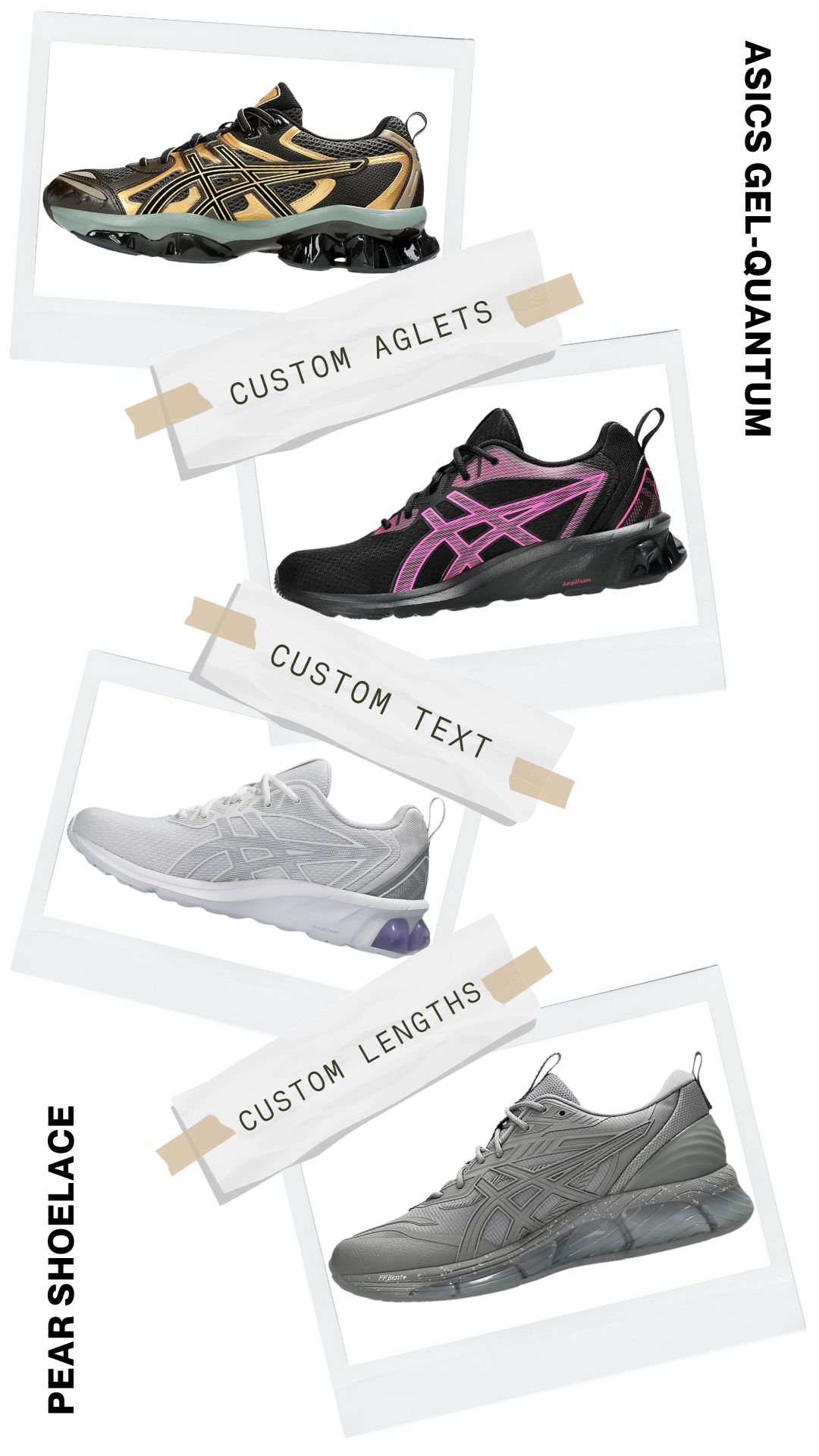 Elevate your Asics Gel-Quantum with Pear Shoelaces, known for their superior quality and wide range of customisation options. Our shoelaces are crafted to complement the high-performance design of your Gel-Quantum sneakers, adding a personalised touch that makes your footwear unique.