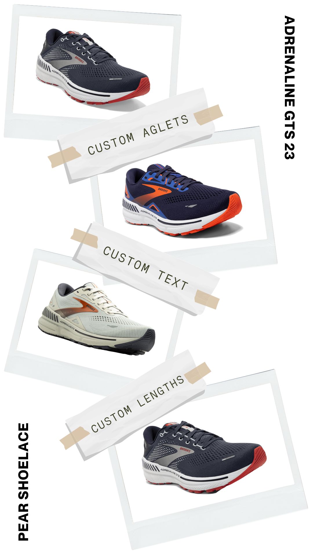 Say goodbye to shoelaces that are either too long or too short. Pear Shoelaces offers custom lengths explicitly tailored for your Brooks Adrenaline GTS shoes, ensuring a perfect fit every time. Enjoy the ideal blend of comfort and style with laces designed just for you.