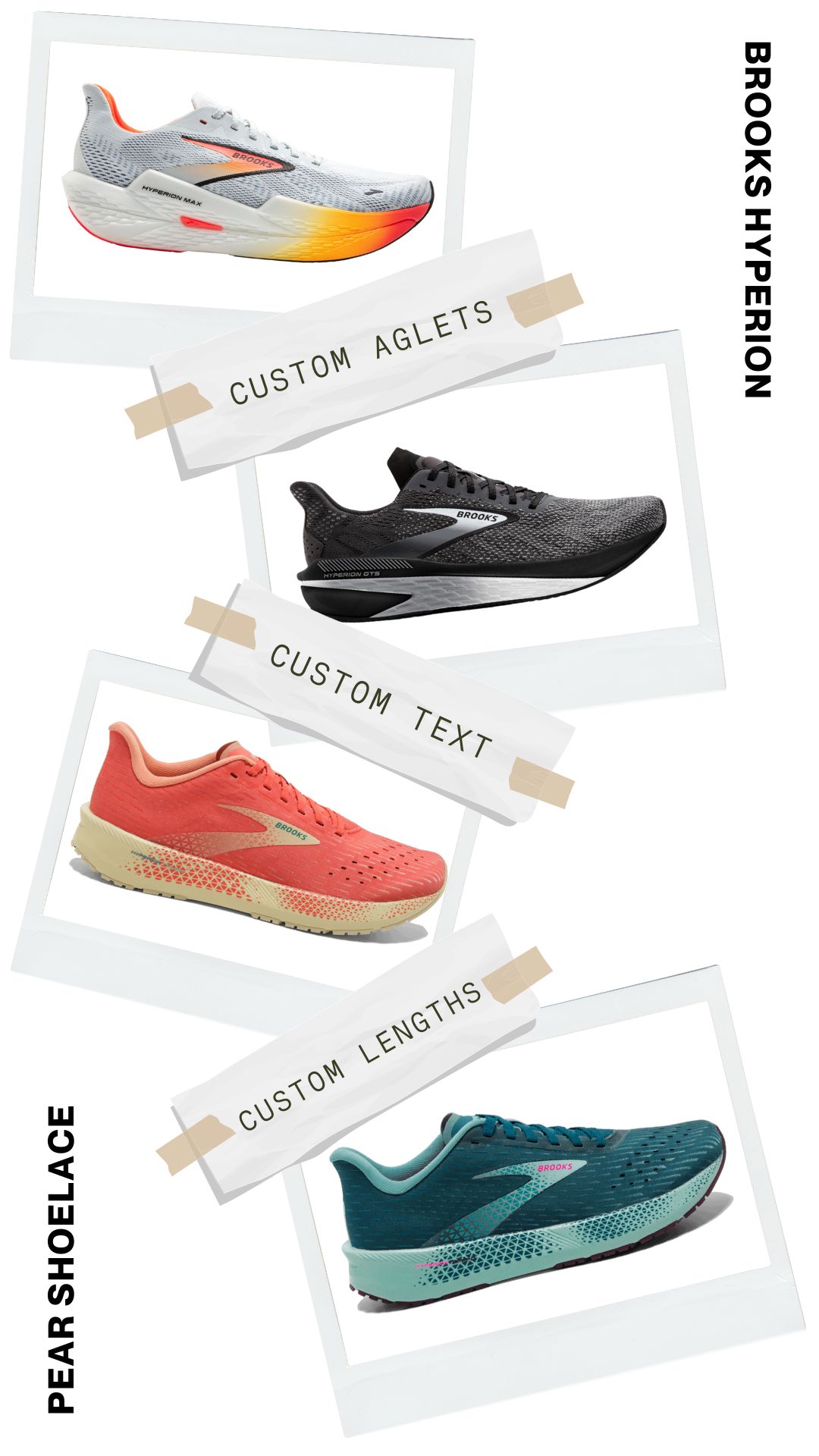 Set your Brooks Hyperion apart by adding custom text to your shoelaces. Whether it’s your name, a motivational phrase, or something entirely personal, Pear Shoelaces lets you create a one-of-a-kind look that reflects your individuality.