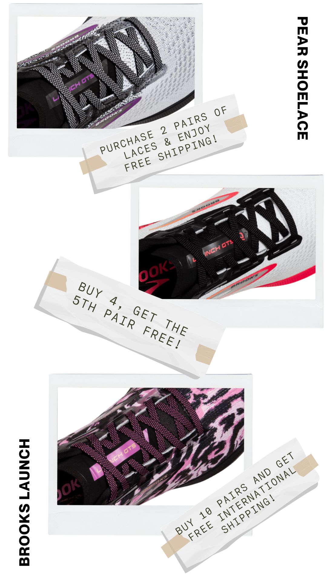 Say goodbye to shoelaces that are too long or too short. Pear Shoelaces offers custom lengths explicitly tailored for your Brooks Launch shoes, ensuring a perfect fit every time. Enjoy the perfect blend of comfort and style with laces made just for you.