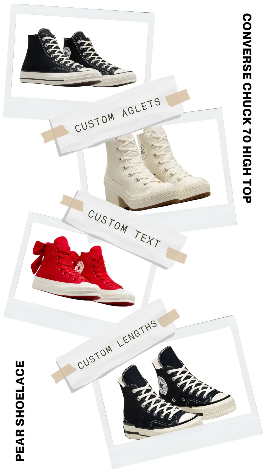 Are you tired of laces that don't fit right? Pear Shoelaces offers custom lengths tailored explicitly for your Converse Chuck 70 High Tops, ensuring a perfect fit every time. Enjoy the ideal combination of comfort and style with laces made just for you.
