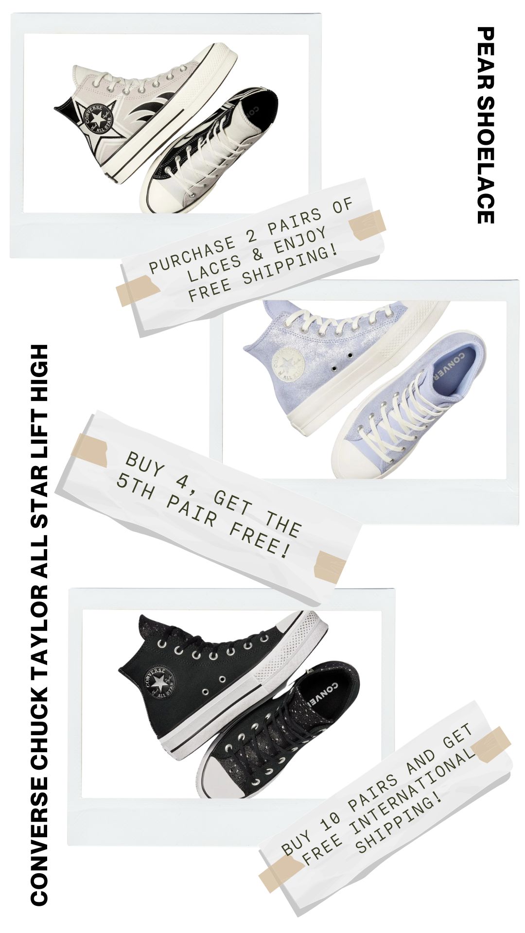 Upgrade your Converse Chuck Taylor All-Star Lift High Top with our premium, customisable shoelaces. Explore our collection to find the perfect pair that matches your style. Shop now and give your sneakers the personalised touch they deserve with Pear Shoelaces!