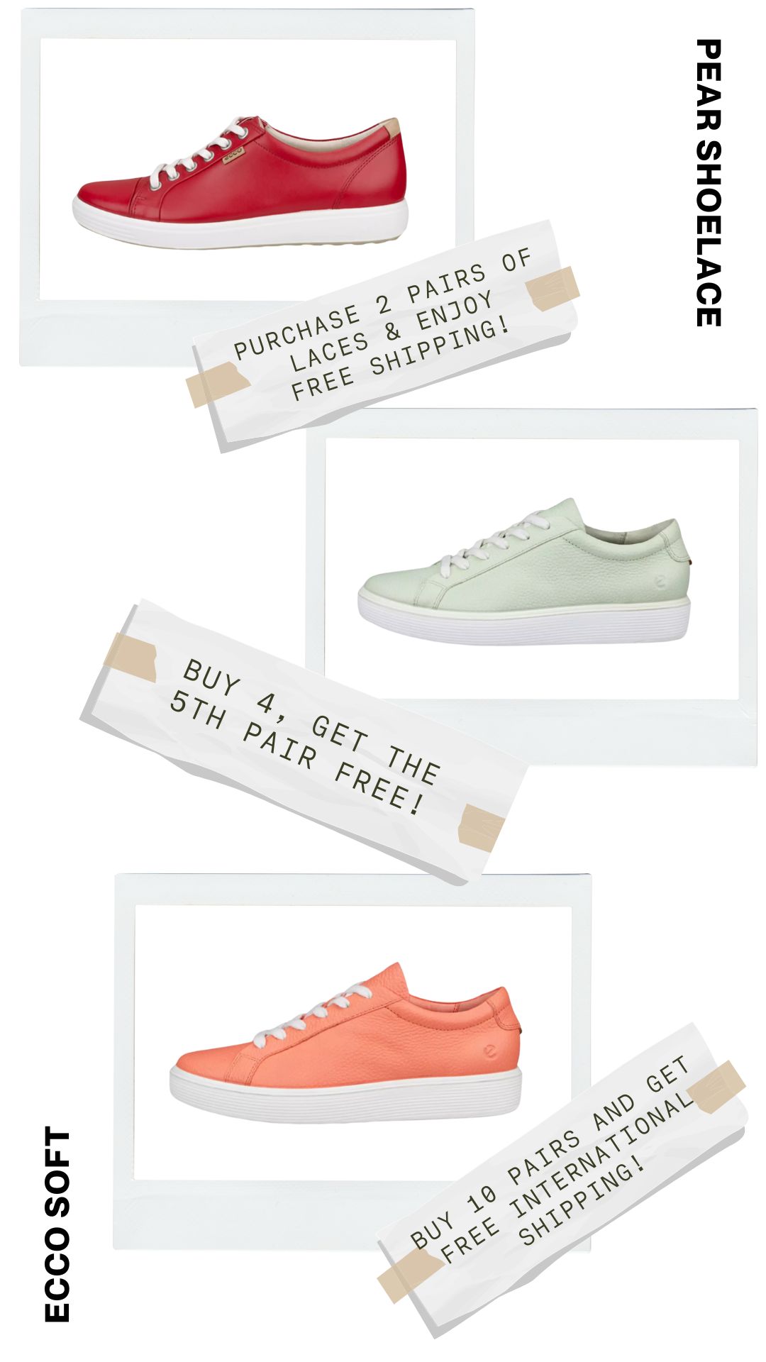 Say goodbye to laces that don’t fit quite right. Pear Shoelaces offers custom lengths tailored for your Ecco Soft shoes, ensuring a perfect fit every time. Enjoy the comfort and ease of laces, just the right size for your shoes.