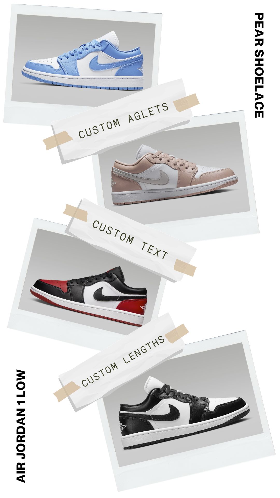 Are you tired of dealing with ill-fitting laces? Pear Shoelaces offers custom lengths explicitly tailored for your Air Jordan 1 Low. Enjoy the perfect tie every time, with laces that complement the iconic design and provide optimal comfort.