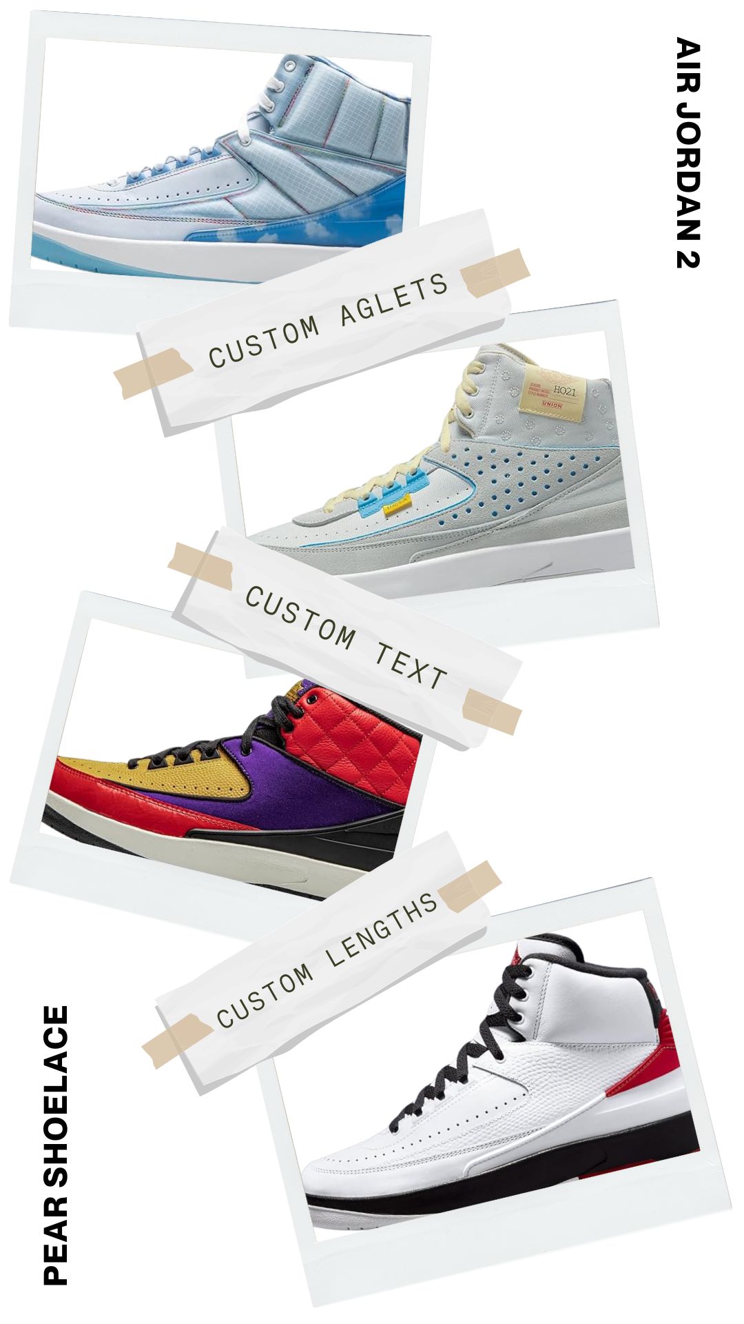 Say goodbye to laces that don't fit right. Pear Shoelaces offers custom lengths tailored explicitly for your Air Jordan 2 High Tops, ensuring a perfect fit every time. Enjoy the ideal combination of comfort and style with laces made just for you.