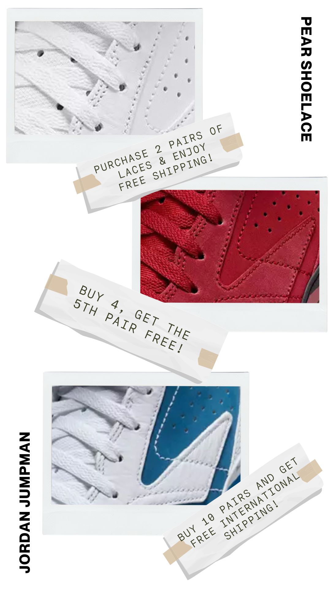 Say goodbye to ill-fitting laces. Pear Shoelaces offers custom lengths explicitly designed for your Jordan Jumpman, ensuring a comfortable and secure fit every time. Enjoy laces that are perfectly tailored to your style and needs.