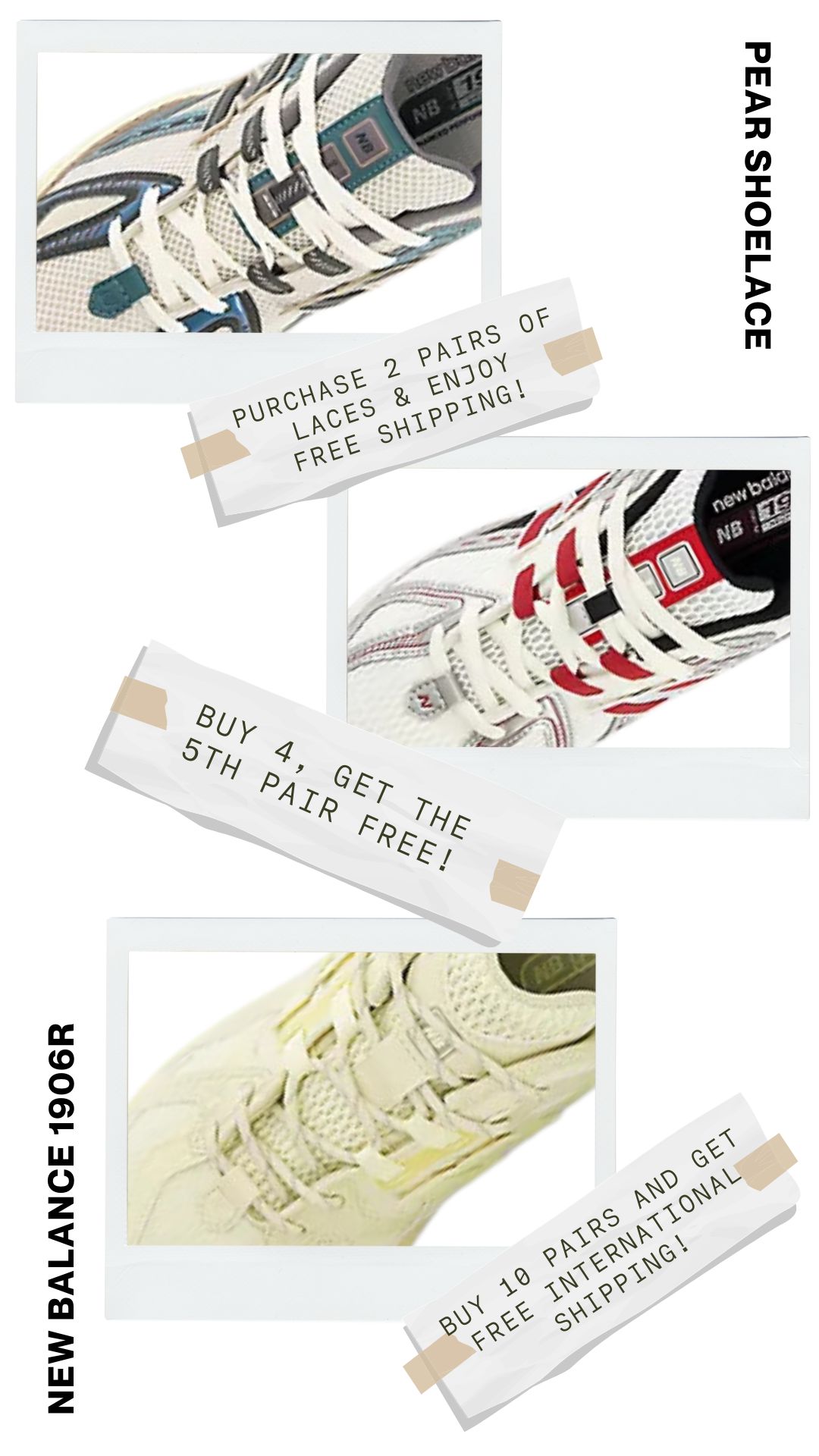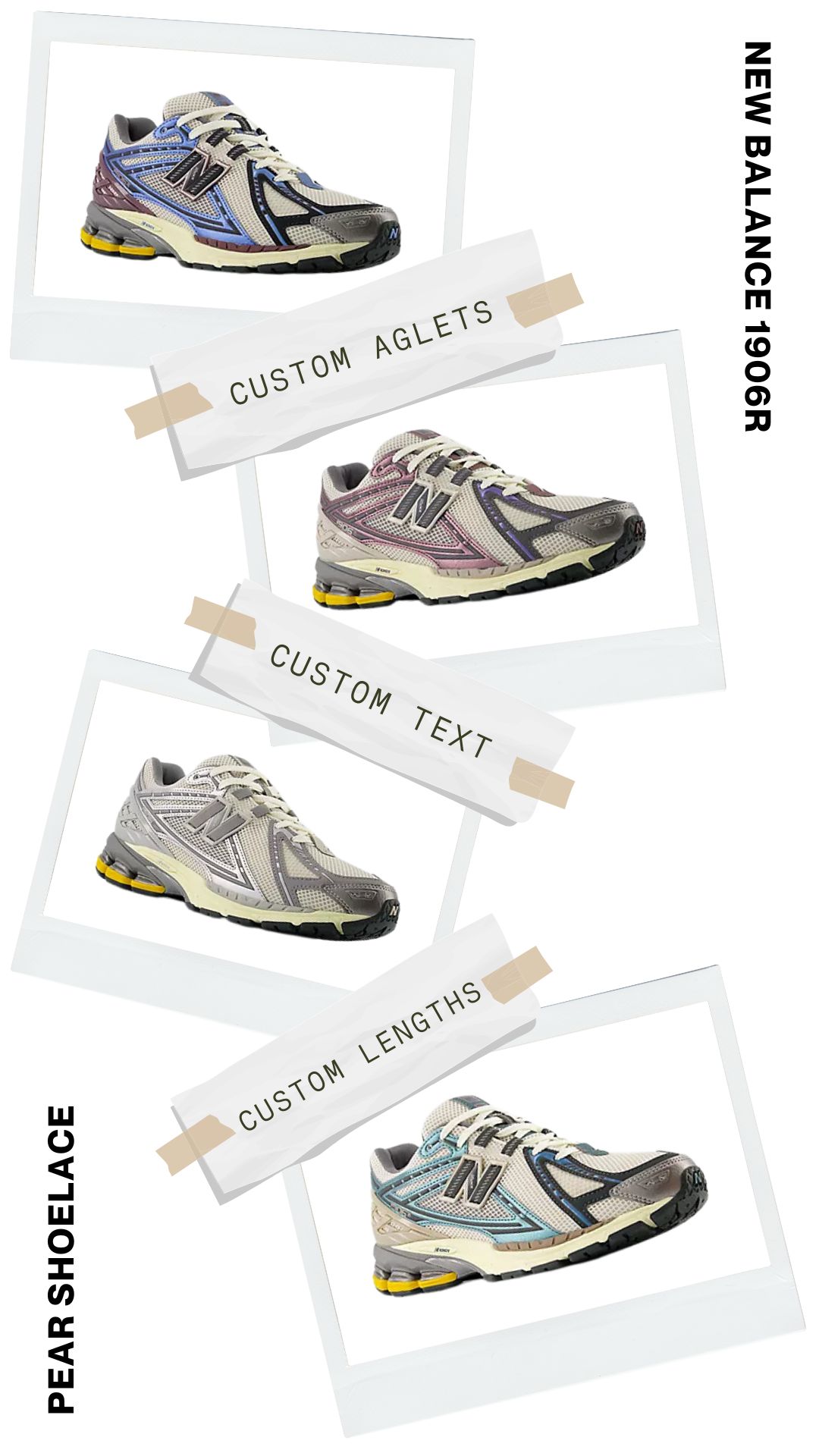Upgrade your New Balance 1906R with our high-quality, customisable shoelaces. Explore our collection to find the perfect pair that suits your style. Shop now and give your sneakers the personalised touch they deserve with Pear Shoelaces!