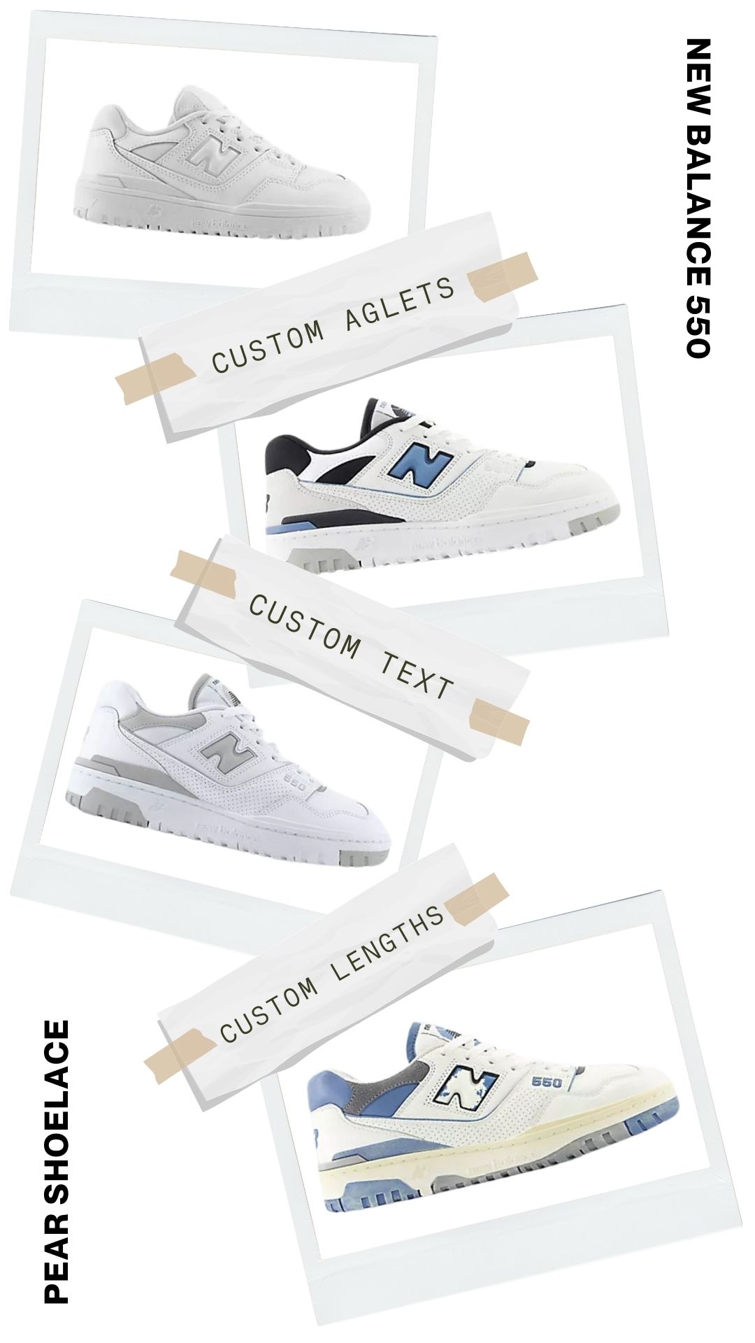 Say goodbye to laces that don't quite fit. Pear Shoelaces offers custom lengths explicitly tailored for your New Balance 550, ensuring a flawless fit every time. Experience the ideal blend of comfort and style with laces made just for you.