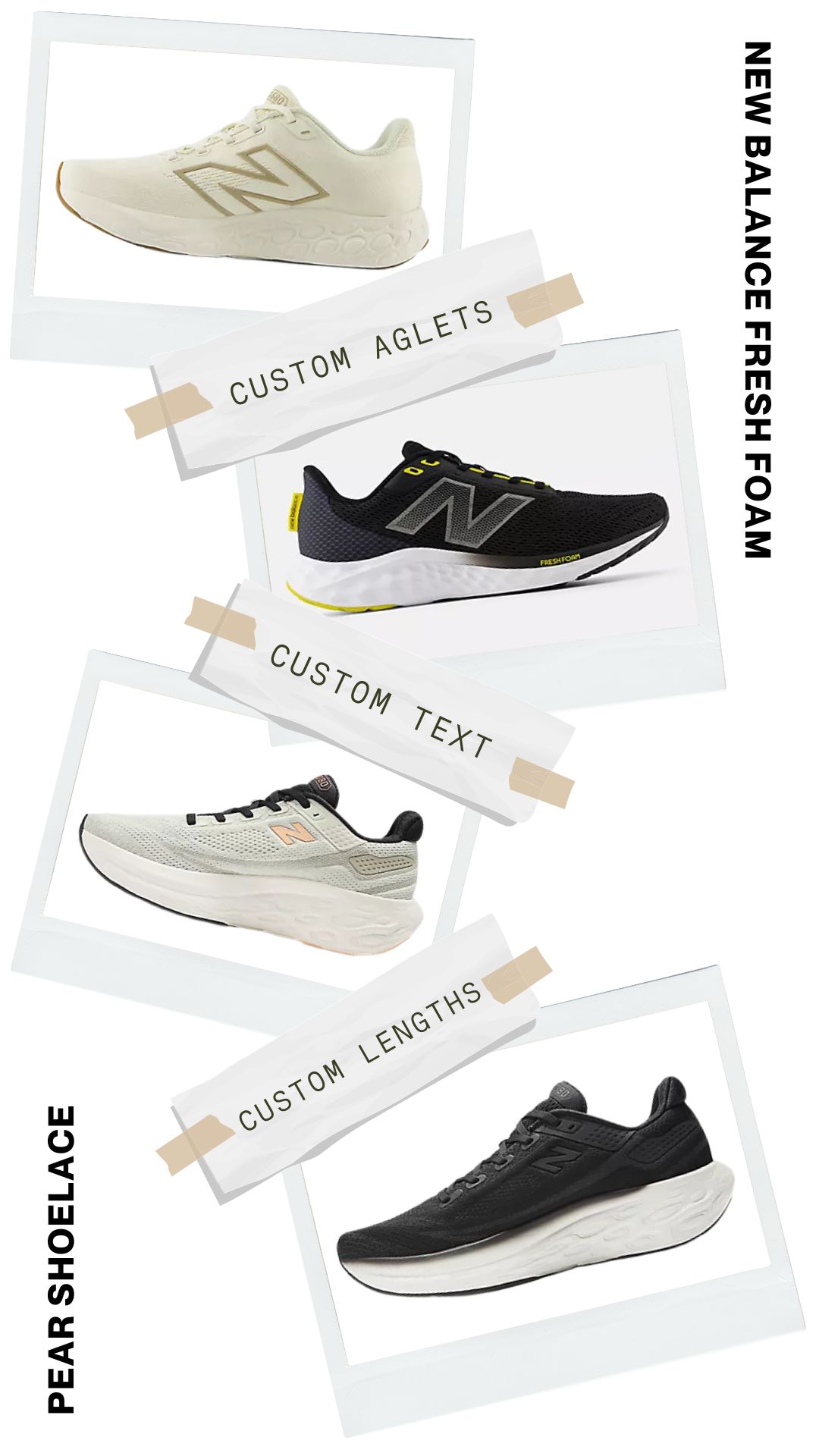 Upgrade your New Balance Fresh Foam with our premium, customisable shoelaces. Explore our collection to find the perfect pair that matches your style. Shop now and give your sneakers the personalised touch they deserve with Pear Shoelaces!