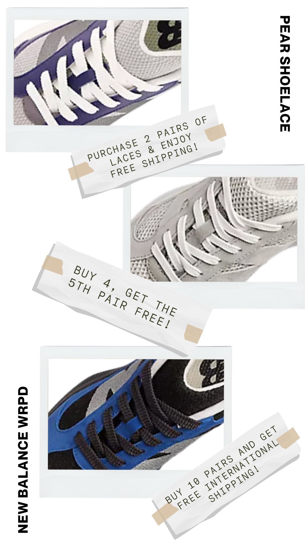 Say goodbye to laces that don’t quite fit right. Pear Shoelaces offers custom lengths explicitly tailored for your New Balance WRPD, ensuring a comfortable and precise fit every time. Enjoy the perfect blend of style and functionality with laces designed just for you.