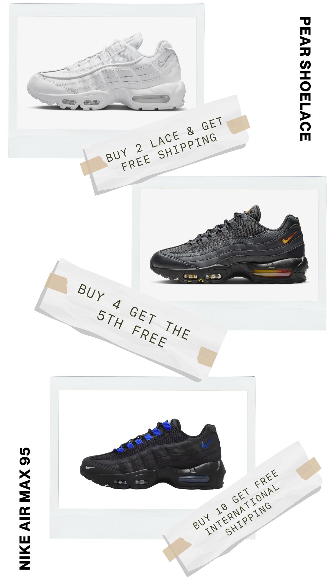 Transform your Nike Air Max 95 sneakers with our premium replacement shoelaces. Browse our collection and find the perfect match for your style. Shop now and give your sneakers the upgrade they deserve with Pear Shoelaces!
