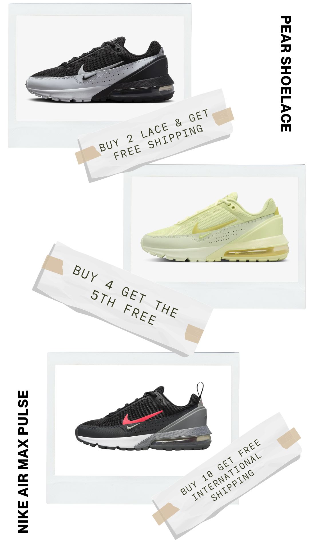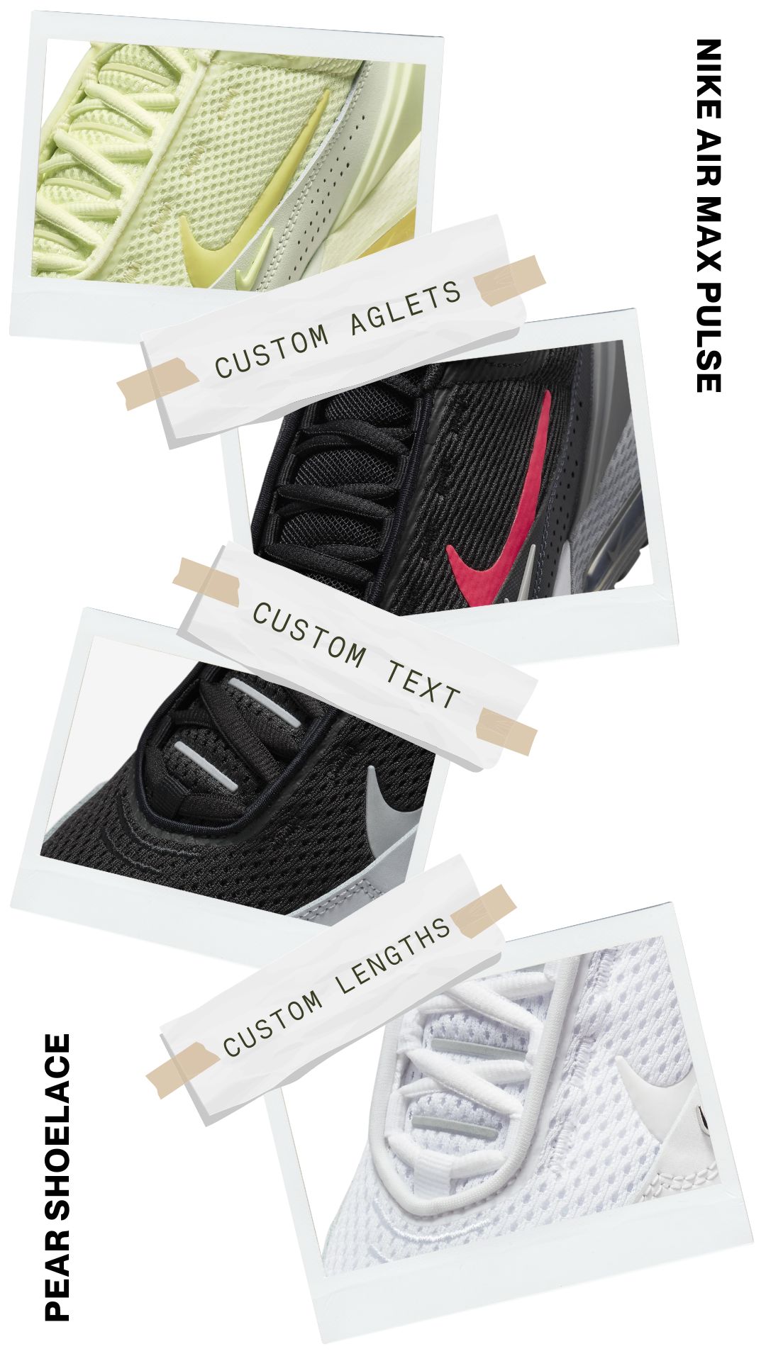 Upgrade your Nike Air Max Pulse sneakers today with our premium replacement shoelaces. Browse our collection and give your sneakers the fresh look they deserve. Shop now for a stylish and comfortable update with Pear Shoelaces!