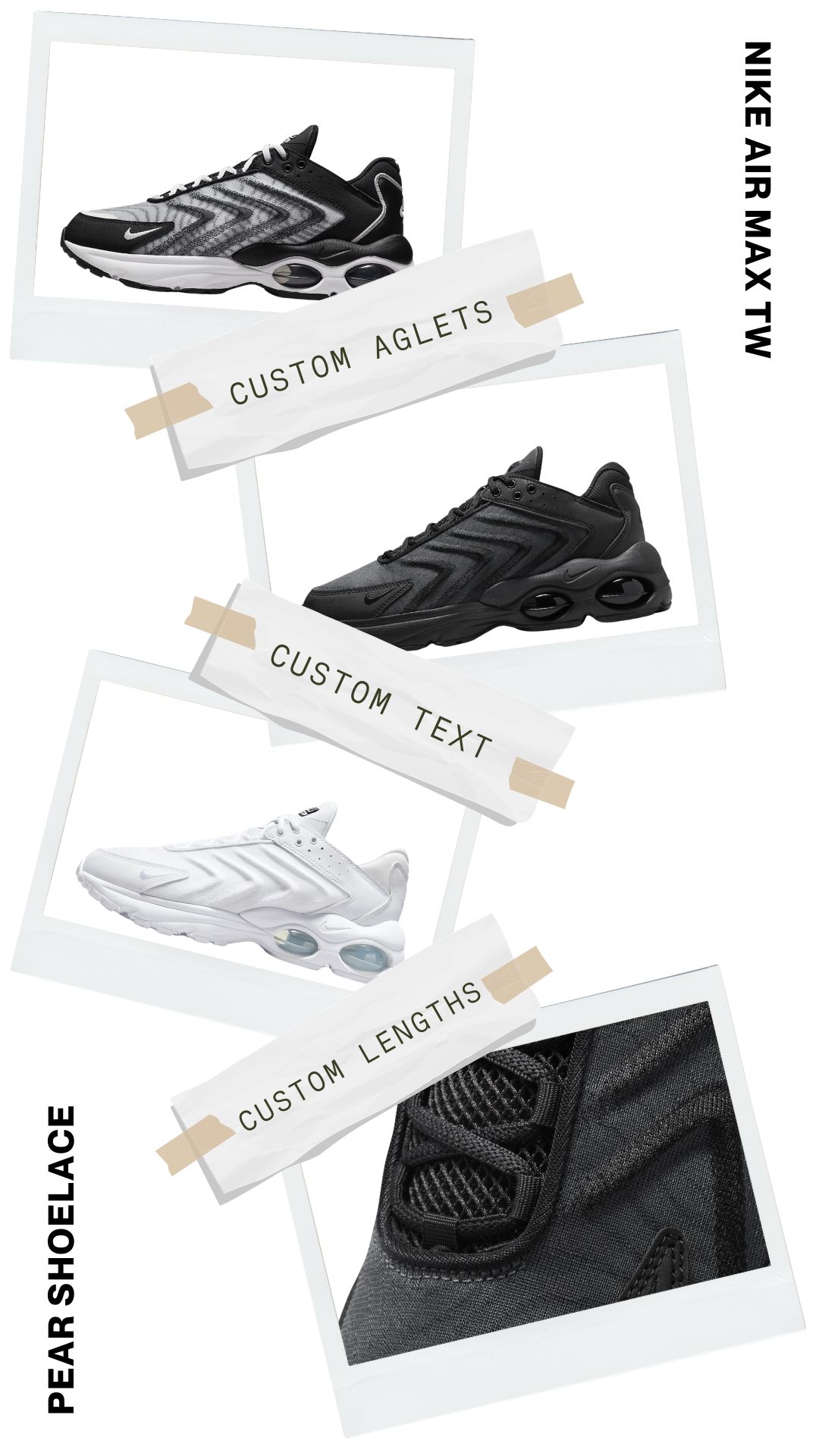 Upgrade your Nike Air Max TW sneakers today with our premium replacement shoelaces. Browse our collection and give your sneakers the fresh look they deserve. Shop now for a stylish and comfortable update with Pear Shoelaces!