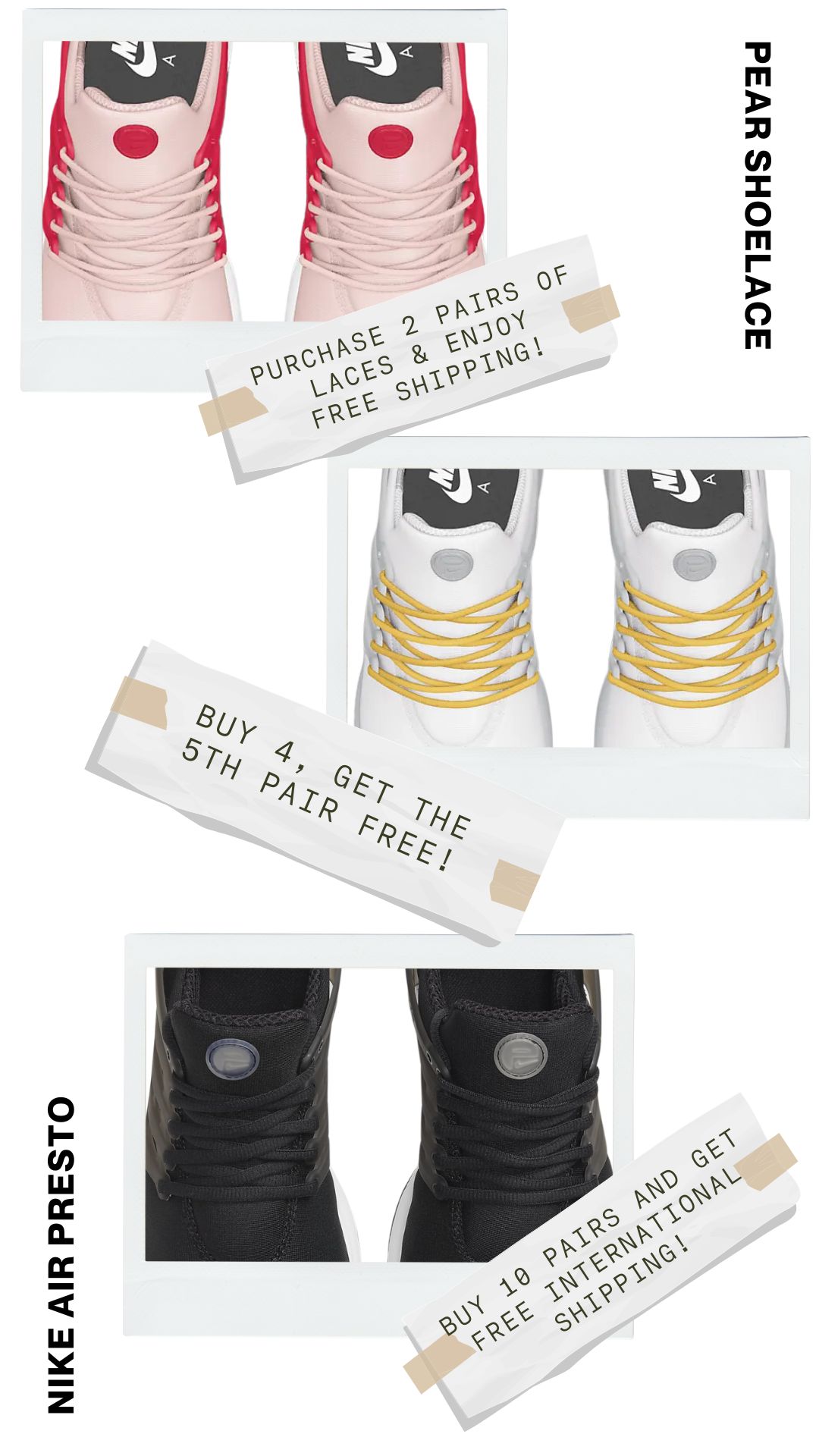 Our shoelaces are designed for durability, providing a reliable solution to keep your sneakers looking sharp. With Pear Shoelaces, your Nike Air Presto will stay stylish and secure all day.