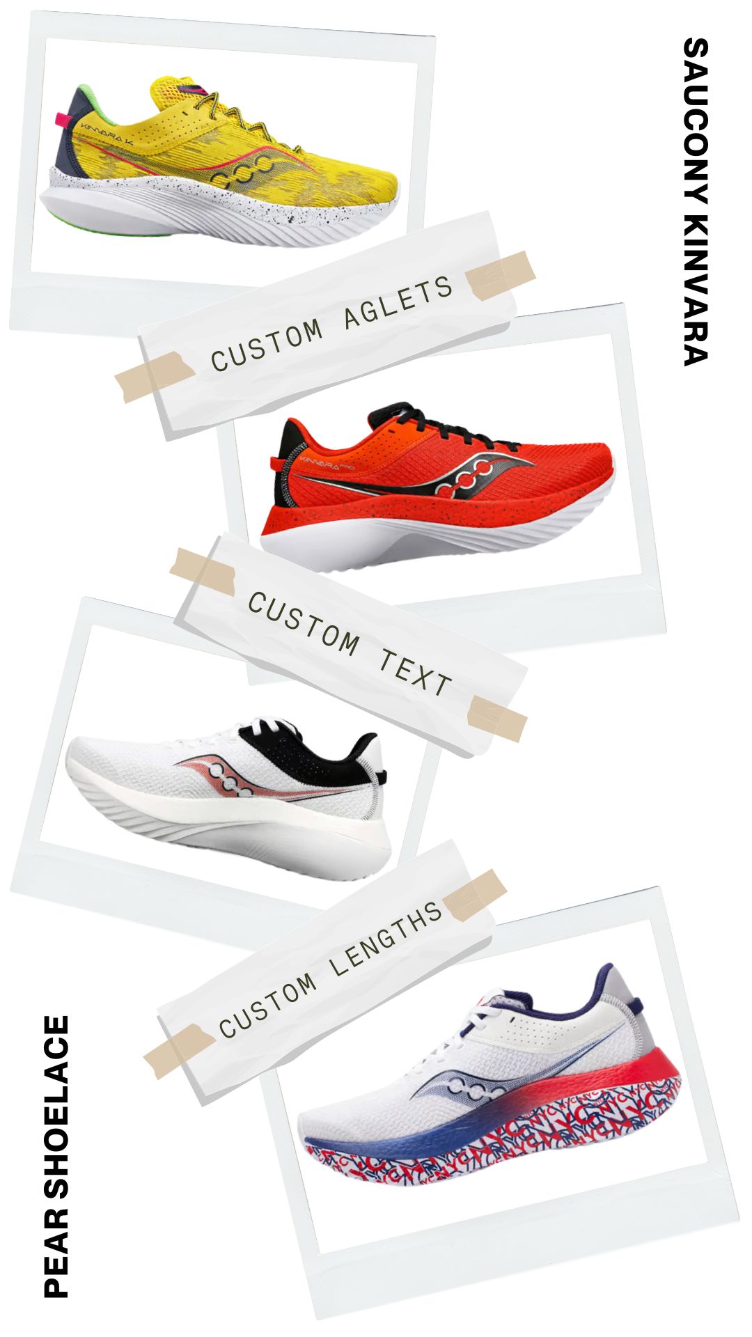 Upgrade your Saucony Kinvara with our premium, customisable shoelaces. Explore our collection to find the perfect pair that matches your style. Shop now and give your running shoes the personalised touch they deserve with Pear Shoelaces!