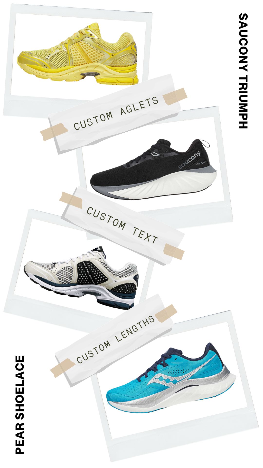 Say goodbye to shoelaces that are too long or too short. Pear Shoelaces offers custom lengths explicitly tailored for your Saucony Triumph sneakers, ensuring a perfect fit every time. Experience the ideal blend of comfort and style with laces made just for you.