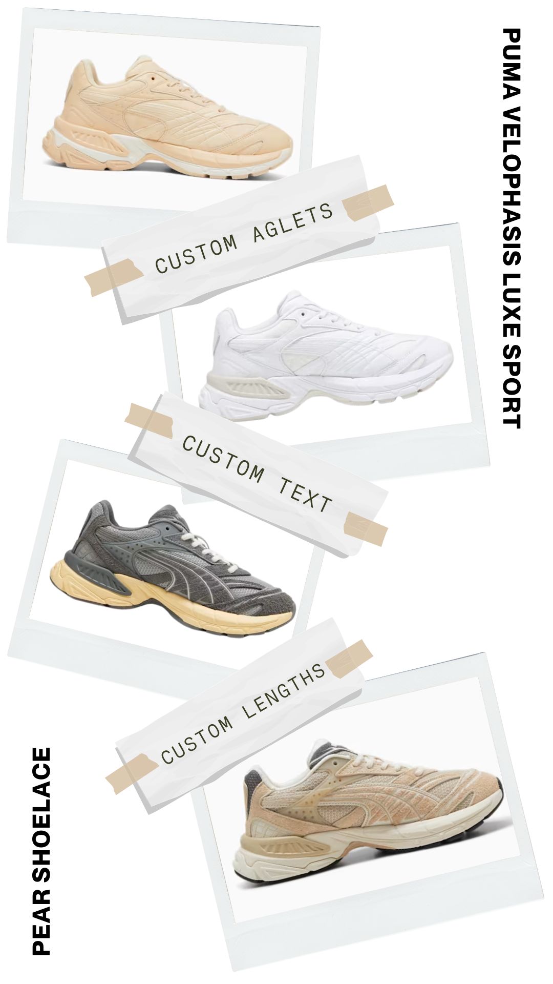 Upgrade your Puma Velophasis with our premium, customisable shoelaces. Explore our collection to find the perfect pair that matches your style. Shop now and give your sneakers the personalised touch they deserve with Pear Shoelaces!