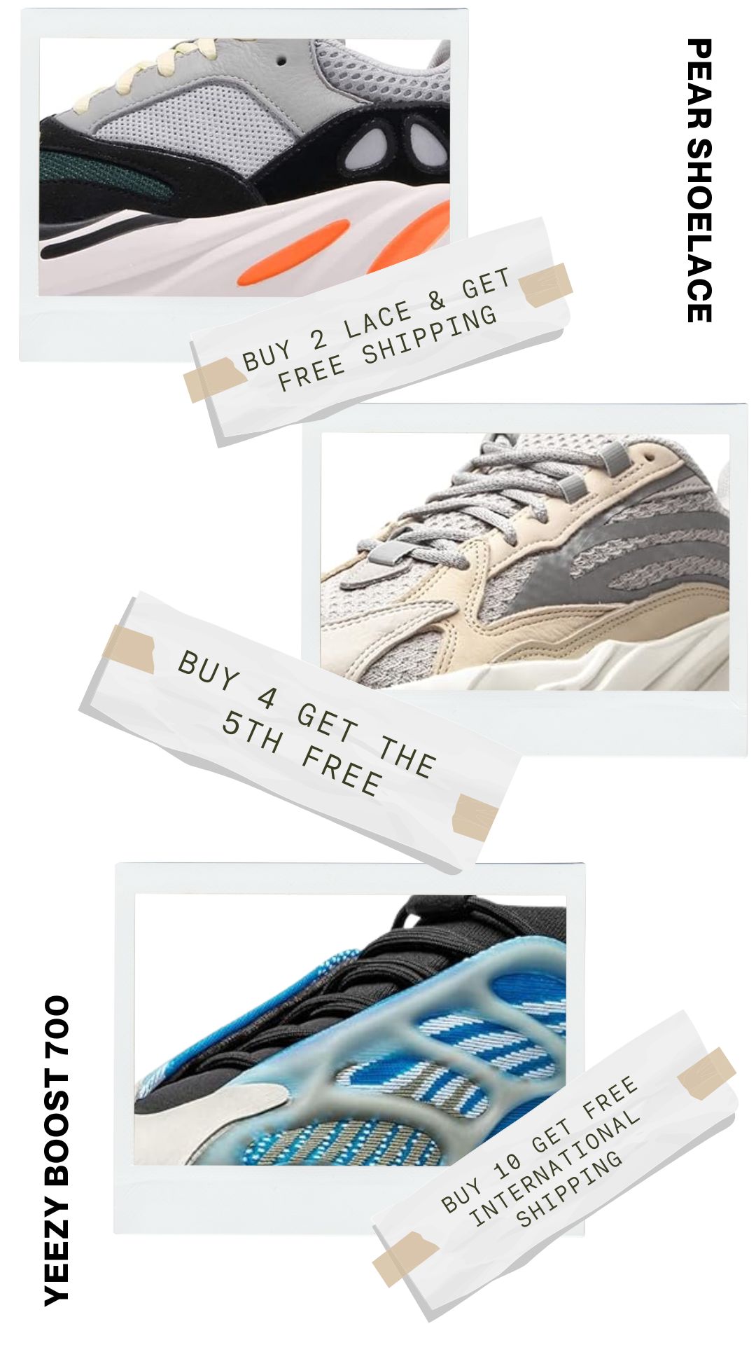 Upgrade your Yeezy Boost 700 sneakers today with our premium replacement shoelaces. Browse our collection and give your sneakers the fresh look they deserve. Shop now for a stylish and comfortable update with Pear Shoelaces!