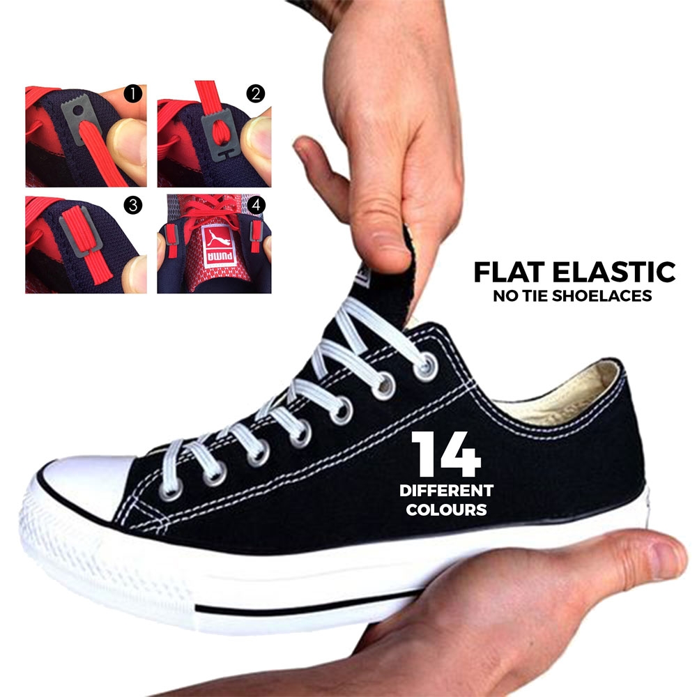 Did you know that our feet are known to expand during the day, why not allow your shoes to fit your feet by using our flat elastic shoelaces, rather than getting your feet to fit your shoes.