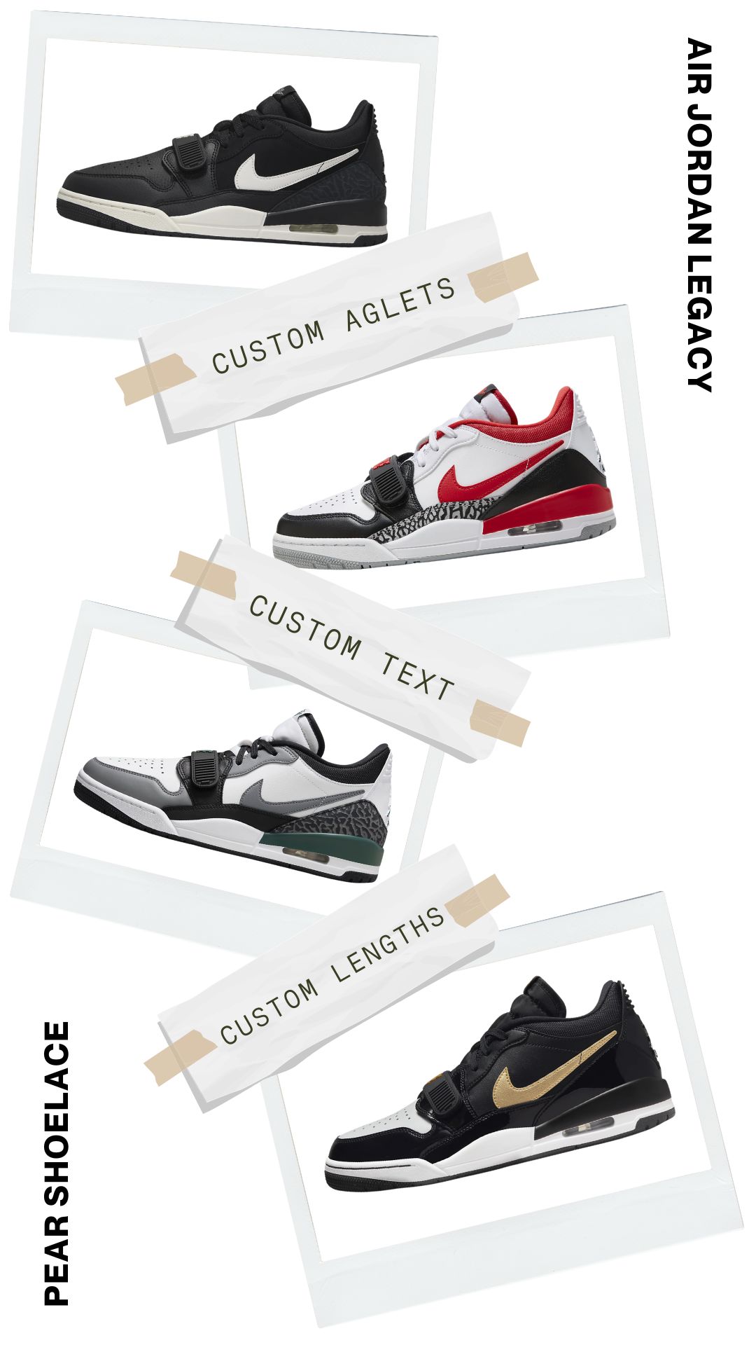 No more settling for standard laces that don’t match your style. Our custom lengths are tailored specifically for your Jordans, ensuring a flawless fit that provides comfort and stability. We have the perfect length, whether you prefer a snug look or a looser vibe.